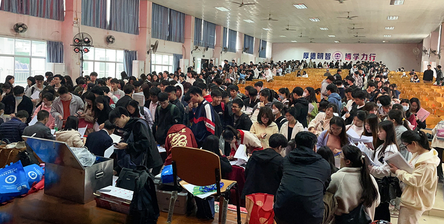 本网讯 为促进毕业生留肇就业、顺利就业,威尼斯官网积极与县区教育局联合开展教师专场招聘工作。3月16日-17日,怀集县教育局教师专场招聘会在学生发展中心举行,招聘岗位包含中小学语文、数学、英语、体育等学科教师,共15个岗位招聘144人。
