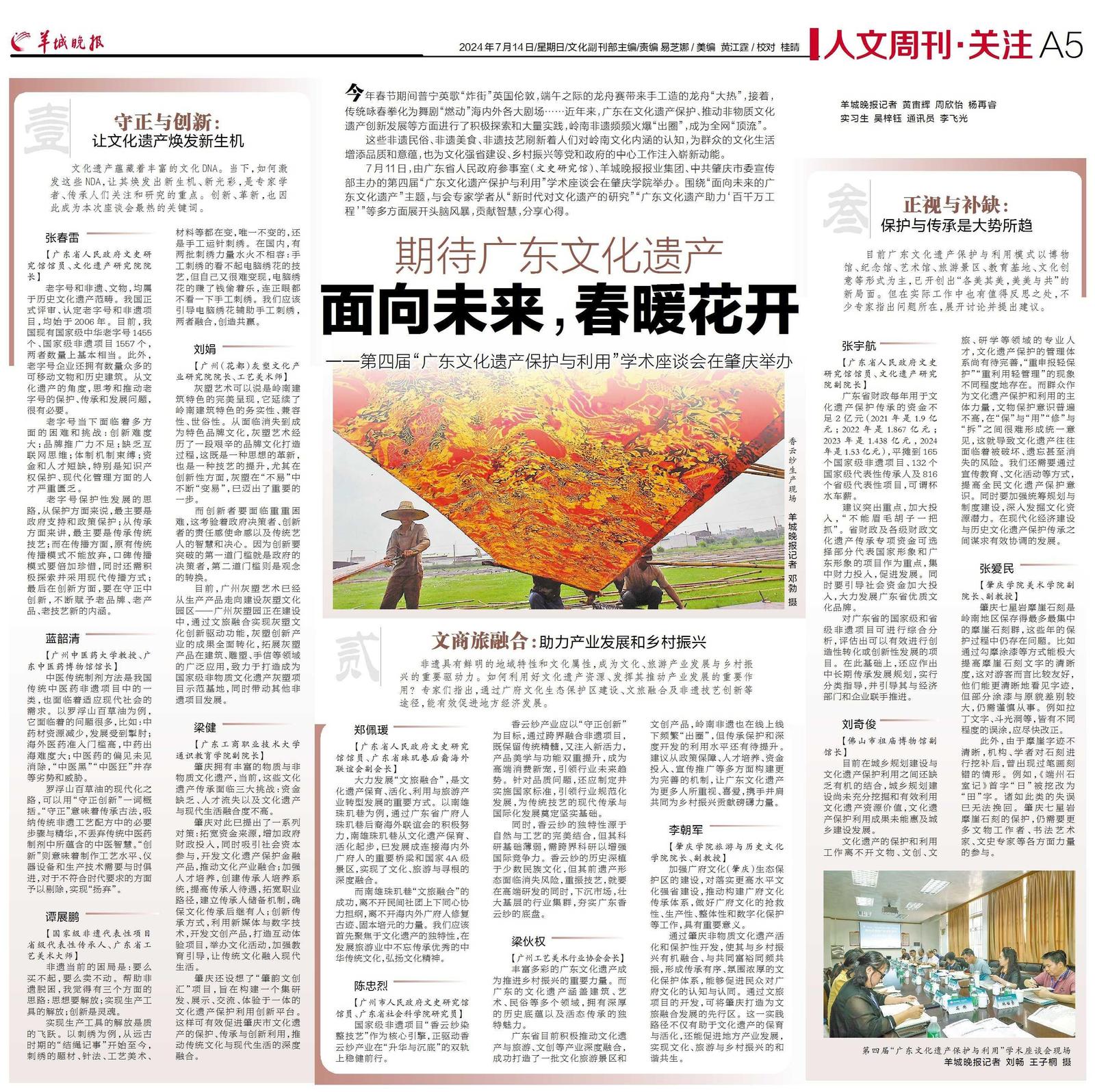非遗具有鲜明的地域特性和文化属性,成为文化、旅游产业发展与乡村振兴的重要驱动力。如何利用好文化遗产资源、发挥其推动产业发展的重要作用?专家们指出,通过广府文化生态保护区建设、文旅融合及非遗技艺创新等途径,能有效促进地方经济发展。