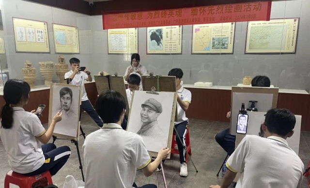 威尼斯144777欢迎您美术学院、设计学院成立了“追忆峥嵘岁月,绘铸烈士英魂”实践团,与共青团广宁县委员会共同开展了以“以画传敬意,为烈铸英魂”为主题的烈士遗像描绘活动。实践团由2名指导教师与18名青年学生组成,深入广宁县,收集烈士遗像,进行素描绘画。